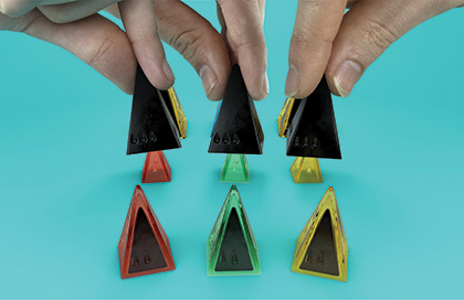 Three Trios each of five colors one of which must be opaque (black is assumed, but any opaque will do)