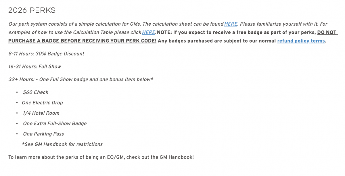 Volunteer! - We are going to need some volunteers for specific scheuled times. We are still working out the exact details, stay tuned - Signup Sheet coming soon. Hours worked on our schedule can count towards the hours needed to earn Origins GM Perks <read full details>.