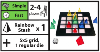 Equipment: 1 Rainbow Stash, a 6-sided die, a 5x5 Grid with the corners blocked